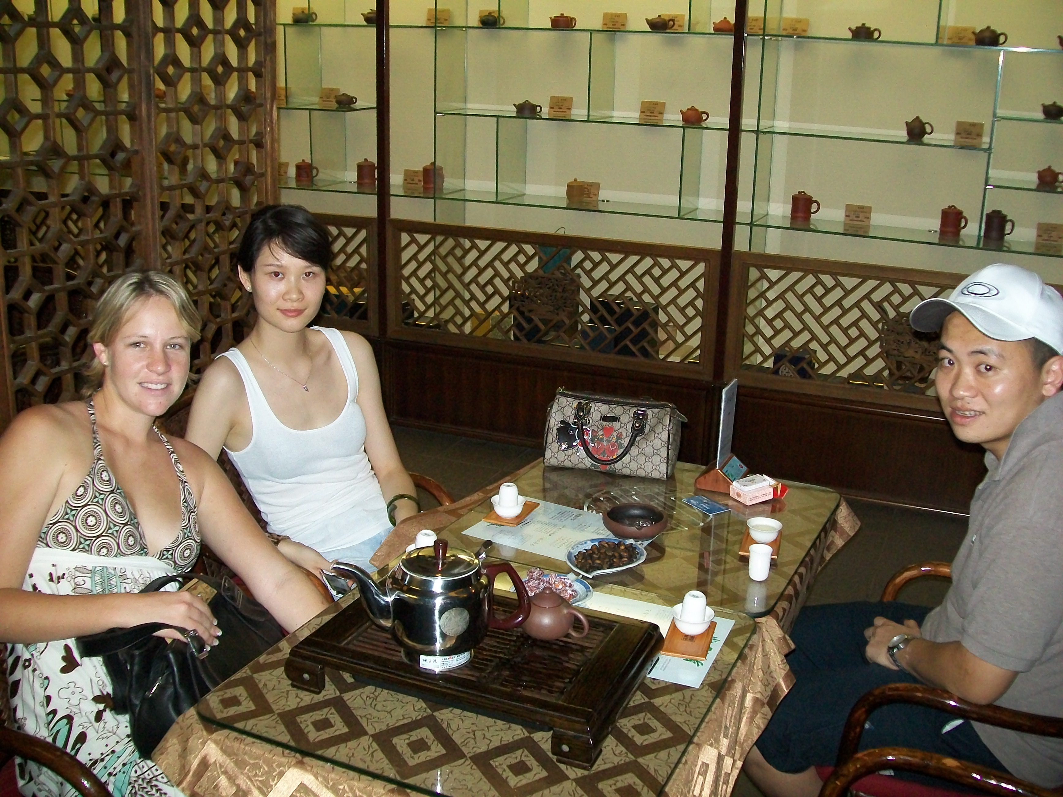 The teahouse was expensive by local standards so it was pretty much empty, but it did have some cool things in there. The tea was brought out on a tray that was around 5cm thick more like a box with a latticed top to catch any wayward drops. The teacups themselves were tiny with a cup inverted inside each one. This was to keep the tea hot for the first serve and the inverted thimble was kept in place by the suction caused by the liquid inside, very cool. The teapot itself was made with a porous earth that would soak up the liquid inside, in fact if you touched the outside of the pot, water would come to the surface. This means that over the life of the pot it would acquire and hold a distinct and unique flavor depending on the tea used and the age of the pot. Each pot is only used with one type of tea for its entire life and some of the pots have been around for over 1000 years, there were some of these pots with a story and timeline in glass cabinets around the walls of the teahouse.