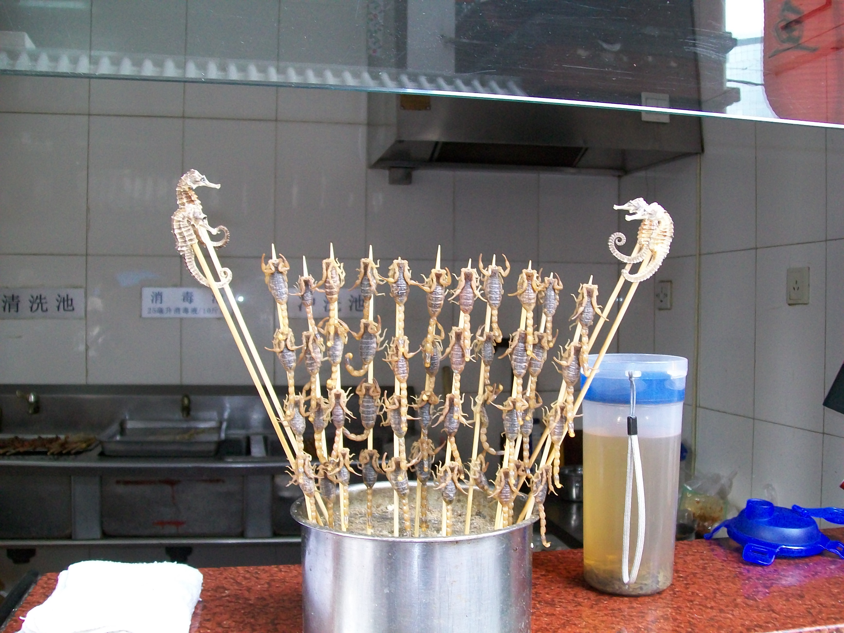 After we were done with the massive crowds and exploring the city we made our way down into the main part of town. There was an inner city market going on and apart from the usual trinkets and junk you find at most markets, there were some crazy varieties of food like scorpions on a stick, in fact there were quite a few things on a stick like centrepieds, grasshoppers, sea horses and star fish just to name a few. We settled for some spicy pork and squid on a stick, well at least that is what I think it was. Then we carried on checking out the wares, we picked up a couple of bits and pieces for people back home and then to escape the hustle and bustle we stepped into a tea house to grab a few thimbles full of tea.