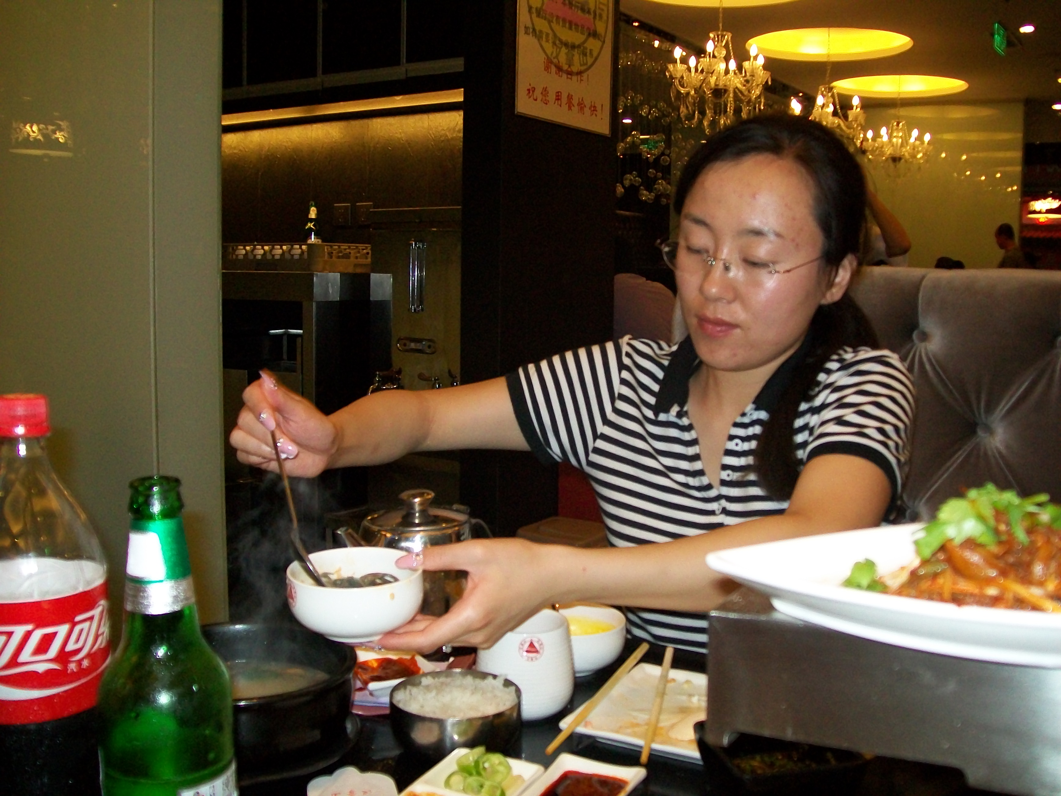Song and Peichen ordered two dishes that contained dog meat one was a dish with a sauce this was a little strong flavored for my taste, the other was a dog meat soup, Tiff said she enjoyed this one and although I tried it, I am not sure weather it was the flavor or the concept of eating K9, I wasn’t really that keen. Though I have threatened our Maltese spike with this fate since then, especially if he keeps barking at nights.