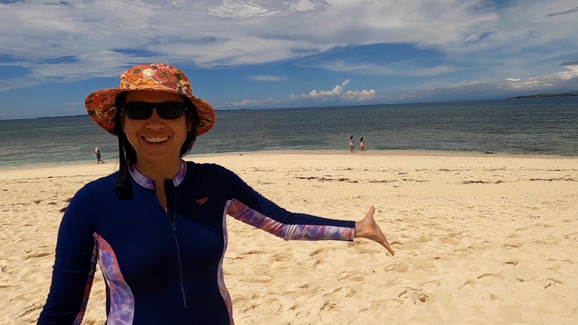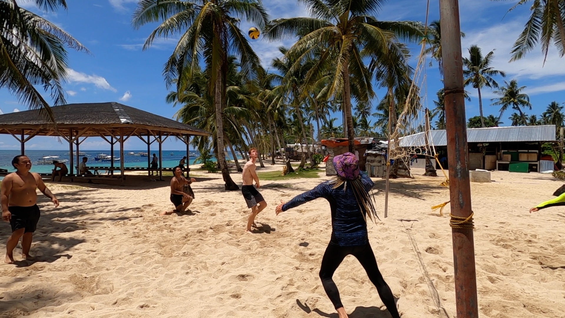 Flo contacted us early to see if we wanted to go out on the boats for an Island tour. We said count us in, we got organised in record time and made our way out to the launch site, which was just in front of the wet markets. Christine and Scotty were starting to come down with some type of flu, but they were still up for the adventure. We met up with our guide, Angelo, and our captain, Albert, at the wet markets and took the boat out to a small nearby island named Guyam Island. This island was tiny with only two dwellings, a volleyball net and a handful of coconut palms dotted around it. A small band of musicians had set up to play music for the tourists. Christine and I danced some salsa while we listened to the music, Angelo filmed us dancing while he was giving a commentary of the island tours. While we were walking around the island we had come across a number of coconuts that had been drained of their contents and had been left to dry out in the sun. These coconuts were hollow and light. I mistakenly thought that Byron had picked up one of these coconuts, I suggested that he pip it over the Volleyball net and I would return it. We could make an amusing video about us using coconuts to play volleyball, it wasn’t until I went to return it that I realised that the coconut was actually a full coconut that had simply changed colour after falling from the tree and being left in the sun. A great, if not a little painful, video.