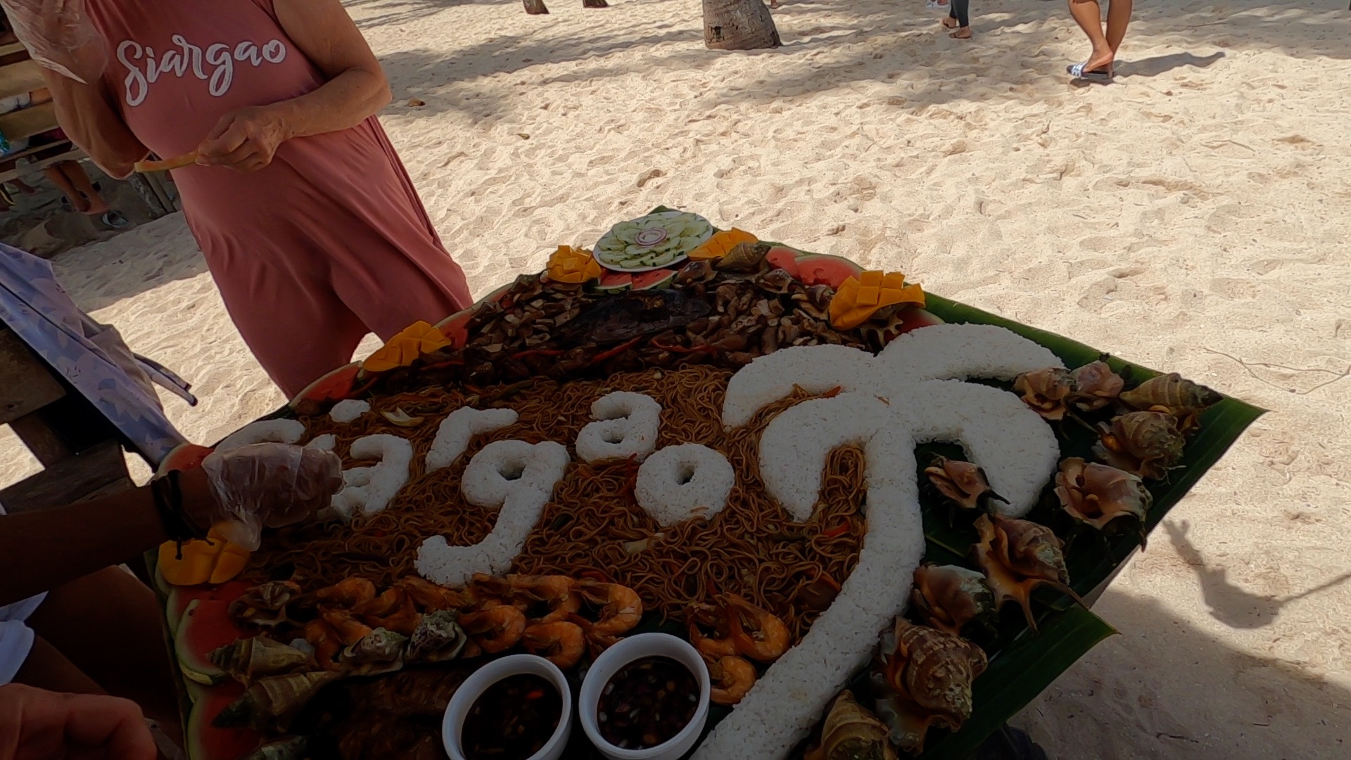 When the food arrived it was absolutely delicious, there was a stack of seafood, rice, chicken and a selection of fruits. We all ate our share including Albert, the driver and Angelo, the guide, and there was still some left over.