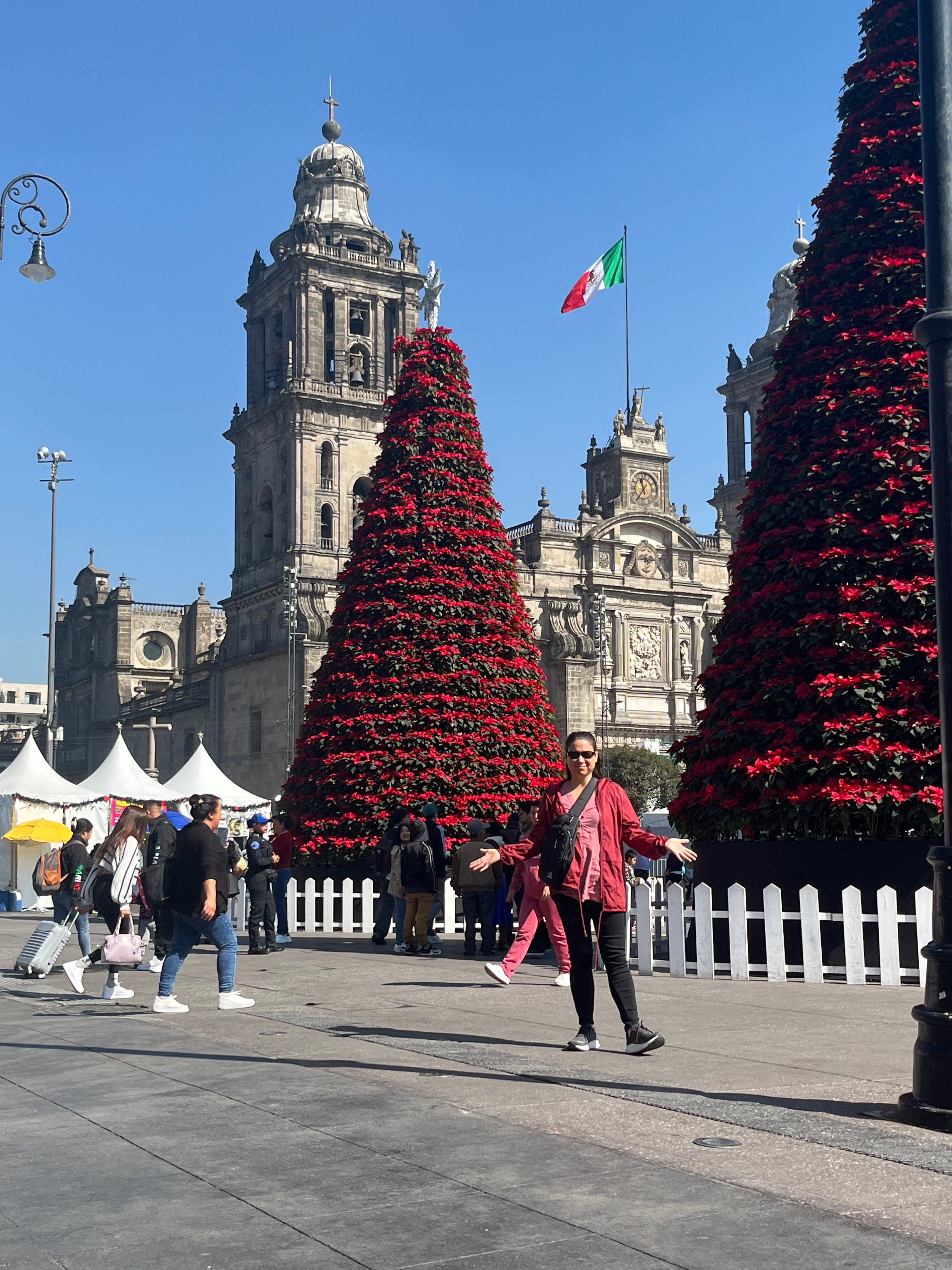 I got up at around 8am, it was still dark outside as it is the middle of winter here in Mexico at this time of year. I did some yoga in the living room while I watched the sun rise over Mexico. It was at this point that I realised how exciting it was to finally be in Mexico City watching the sun rise and taking in the sights and sounds of Mexico City at that time of the morning. I have wanted to travel to Mexico since I was a teenager, and here 30 years later, 15 of which had been spent learning Spanish, I had finally achieved that goal. I then smashed out some Duolingo while I waited for Christine to get up. When Christine got up we went looking for one of the bakeries that we had seen when we were out exploring last night. Alas we did not find the one I was looking for, we did find a cafe that sold over priced bagels, we picked up three bagels, a coffee and a hot chocolate. The whole lot cost around $35 Australian, outrageous for Mexico. We returned to the accomodation and cooked up eggs with avocado and bagels for breakfast, we also made up cereal with banana. Once we were done with breakfast we cleaned up the gourmet kitchen, had showers and ordered an Uber to take us over to Zocalo Square.