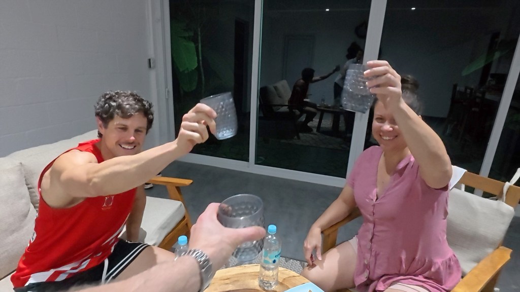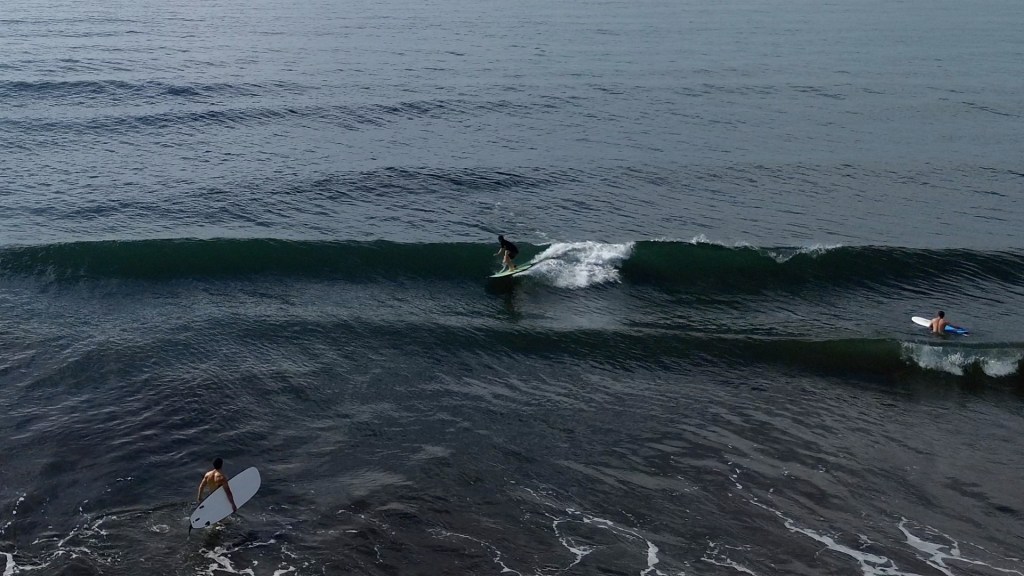 We wandered down to the beach and managed to catch a few nice left and right handers not far from the rock out the front of the main village. We took it in turns to surf with one of us watching the bags and operating the drone while the other two surfed.