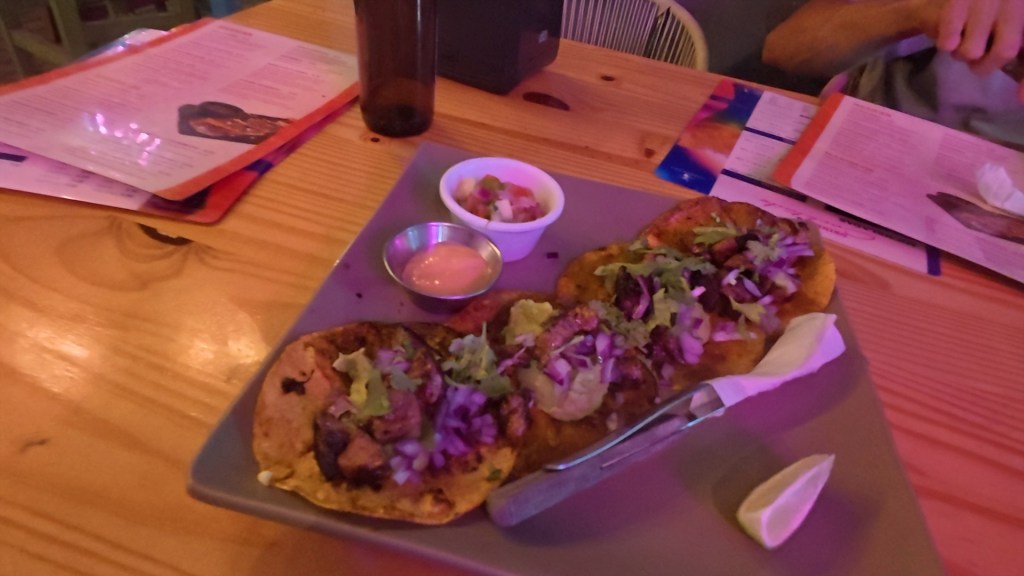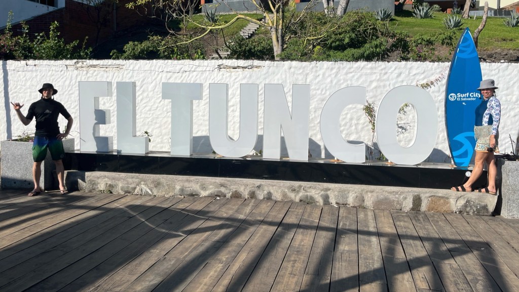 We found a great little restaurant that was serving Mexican style food. Luke ordered a burrito, Christine a pizza and I had a plate of tacos. Luke and I ate our food and then helped Christine to eat hers. After dinner we picked up some artesian ice cream and wandered around the town. The atmosphere was electric with people everywhere eating in the bars and restaurants and listening to live music. We decided to come back in the morning so that we could take some photographs in front of the El Tunco and Surf City signs.