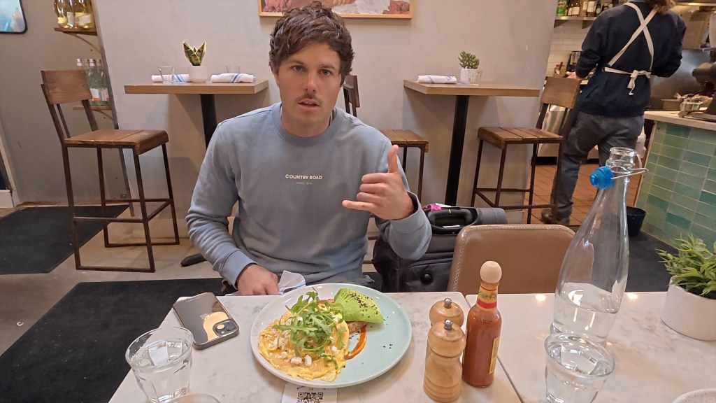 Due to the time difference I woke up at around 4am and struggled to get back to sleep. I eventually got up and did some yoga. This was awesome for my knee and really freed it up. We got organised and checked out and ubered our way to Venice Beach. We dropped our bags at a bag drop place and went for breakfast at an Australian themed cafe. We had scrambled eggs with toast, avocado and salad. We made our way down to the Santa Monica Peer and the beach beside it. Our plan was to take a drone shot from the beach, alas this was not to be. Someone had flown a drone into one of the helicopters during the recent fires and the government had put in place restrictions to stop drones from being operated in this area.