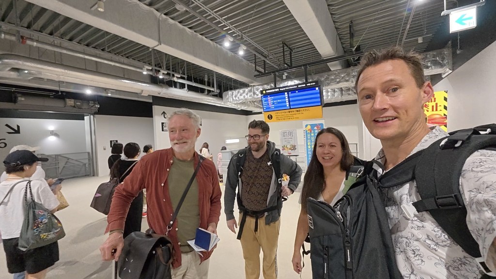 We quickly located our accomodation and used the keypad to gain entry. We had the two top floors and each floor had a combination lock box on the wall. We freed our keys from their lock boxes and had a look around the accomodation. Scotty had the room on the top floor and we had the 3rd floor apartment. Everything in the apartment was tiny, Cassian was in his element, the apartment made him look abnormally huge, he almost couldn’t fit down the hallway. There was a tiny little kitchen which had a tiny little shower cubical attached to it. There was a combination washing machine next the shower cubical. We were fascinated by the toilet, it was fully automated with a range of bidet settings. It would sense you entering the room and automatically lift the main lid. It would sense you getting up to leave and automatically flush. Otherwise there were a range of buttons on the wall that would wash and dry various bits as well as open and close the lid and seat.