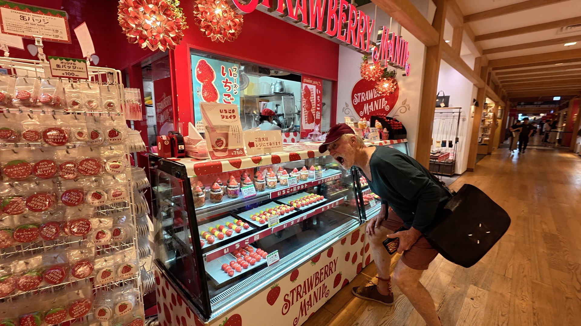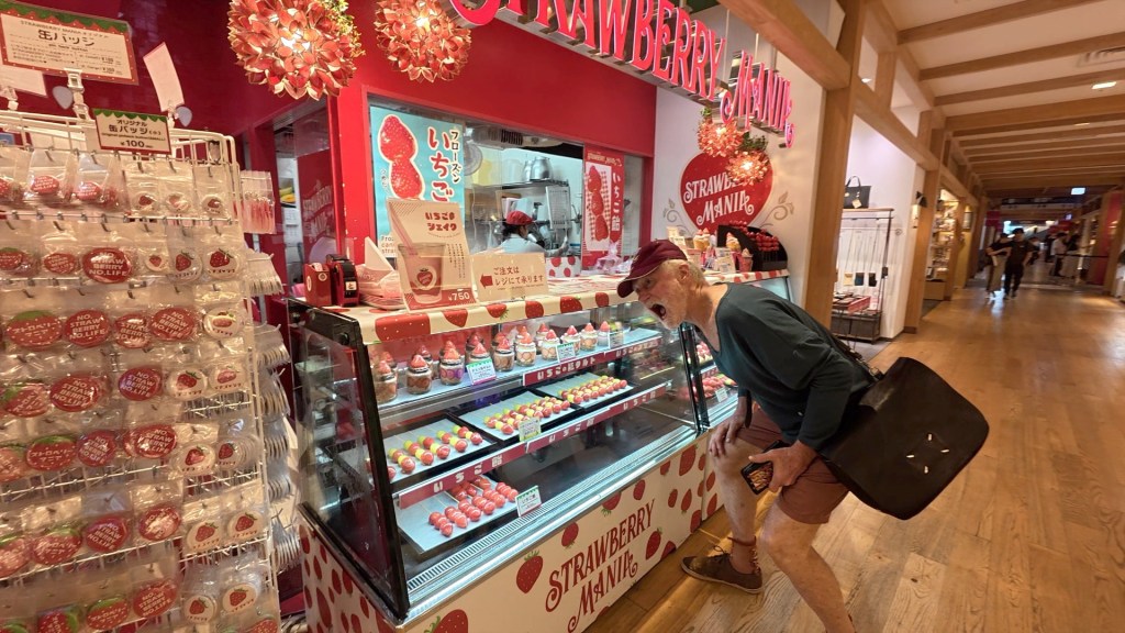 At one point in our journey we had seen a Sizzler restaurant from a grumpy old men’s corner that we had found in the Skytree building, where a bunch of mostly old men sat in chairs that faced out into the city. They were reading books or looking at their phones. This is one interesting thing about Japan, it is not unusual to see people walking down the street or sitting in a restaurant reading a book. We circumnavigated the building and went in search of the building that contained the Sizzler. We eventually found it but it actually wasn’t that interesting. Apart from the Sizzler it contained a home appliance store and a supermarket. On the way to find it, we did however stumble into a beer festival and an entire floor of desert shops with every type of desert that you could imagine.