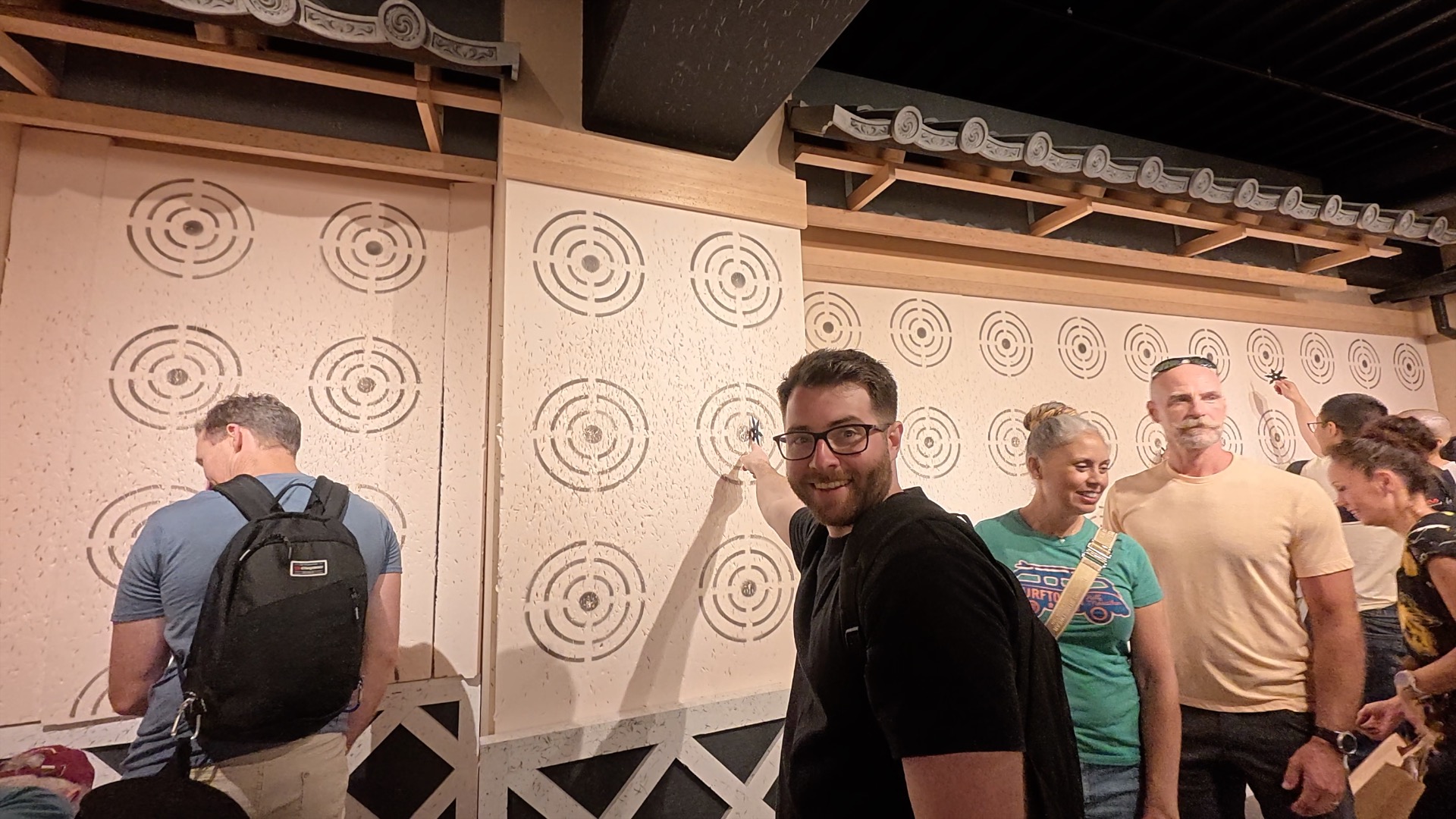 We then navigated our way back to somewhere close to the Asakusa station where we were booked in for a ninja experience at the Ninja museum. The bloke doing the presentation went through the history of Japan including the feudal system, its creation, the samurai and where the ninjas fitted in to the whole picture. Ninjas were basically common people who were assassins outside of business hours. We finished off with a ninja star throwing competition. I made it into the final 3, but then choked under pressure.