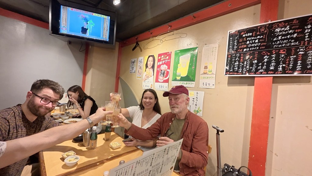 After the Ninja museum we wandered over to the nearby Senso-ji temple that was constructed around 600 CE. We took some photographs and video in the markets that surround the temple. By this stage we had walked around 30km and were a bit dehydrated and hungry. We went to Hoppy street a nearby street that is famous for its street food vendors. We couldn’t find anything that we were interested in trying, and we couldn’t figure out the bbq place that ended up in. As such we decided to give it a miss and headed for the subway. This time we were more successful with our navigation and ended up back at Nezu Station after changing trains a couple of times. We also asked a bloke at Udon Station who gave us a key piece of the puzzle and a map to carry around. This was also a perfect opportunity for Cassian to try out his Japanese skills.